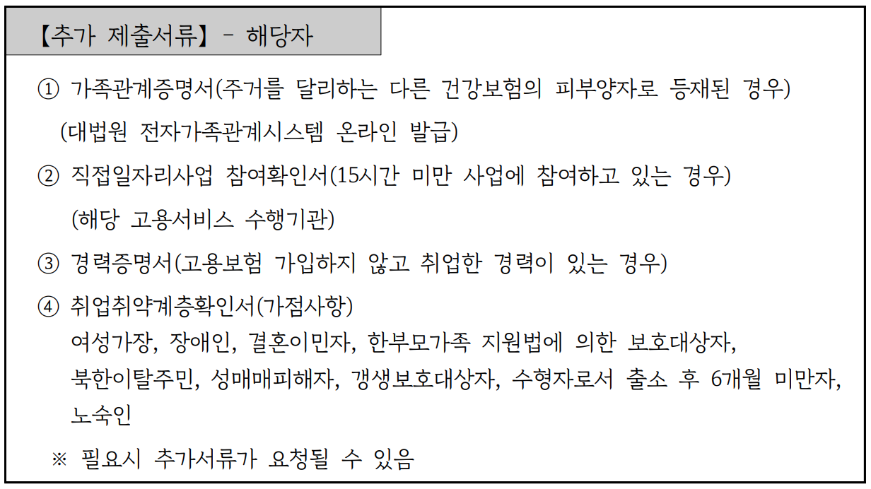 추가 제출 서류는 각자 상황에 맞게 준비하시면 될 것 같습니다.