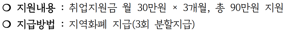 1) 월 30만원씩 3개월간 지원. 총 90만원
