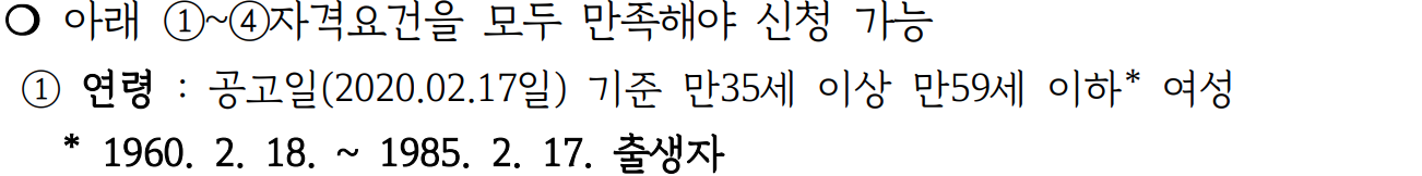 1) 생년월일이 1960년 2월 18일 출생~ 1985년 2월 17일 출생까지 여성