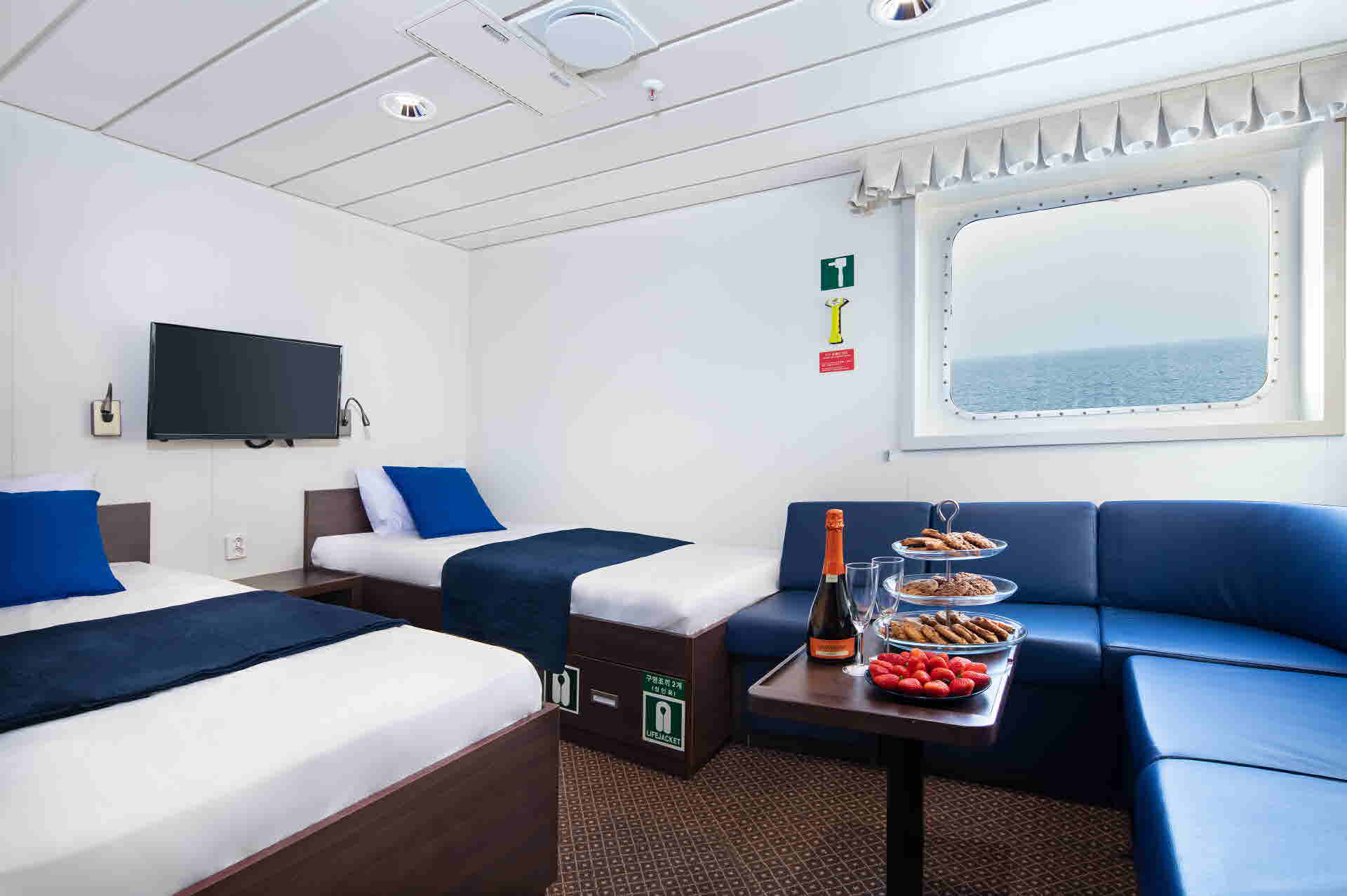 ※ 실버클라우드호 블루펄호의 실내 객실을 사진으로 보시려면 여기를 클릭해 보세요.