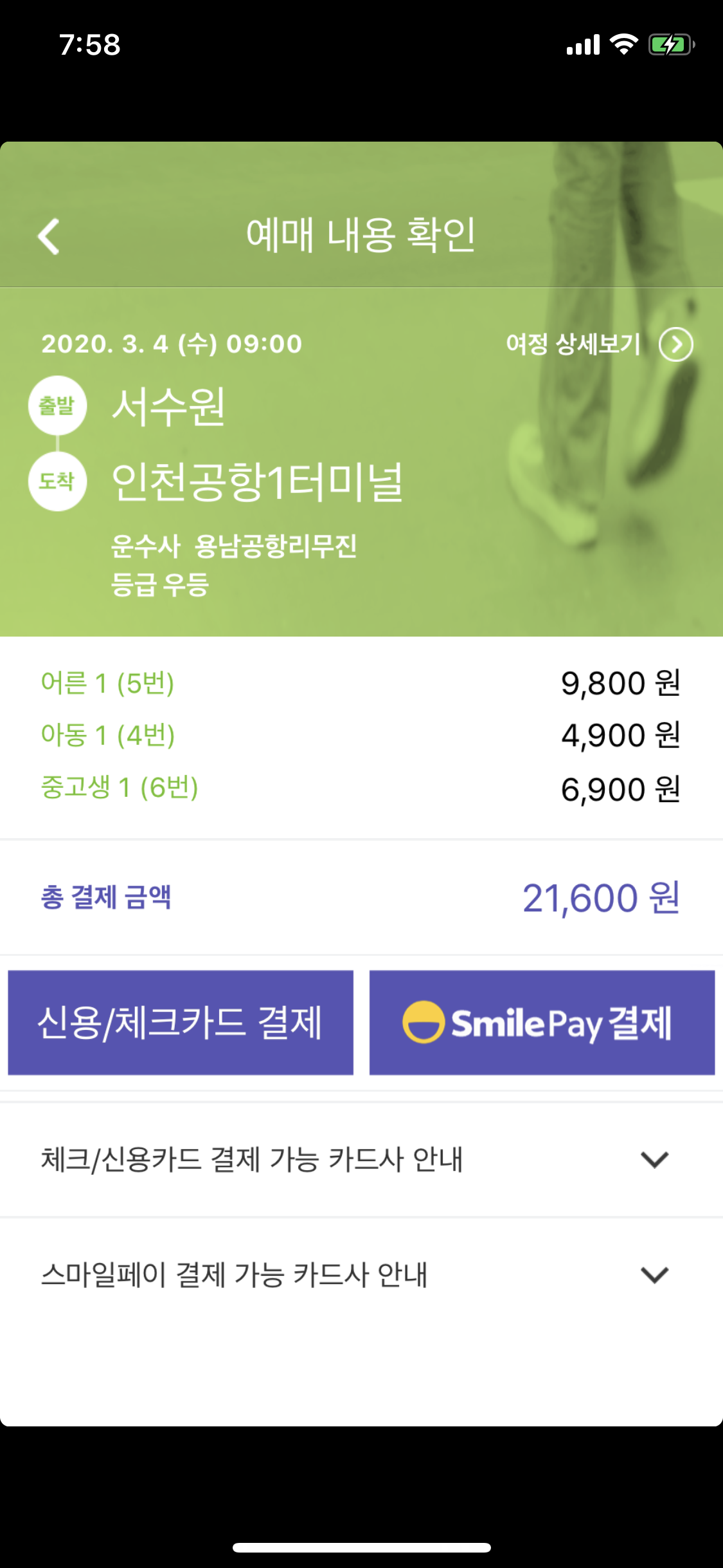 -탑승 희망하는 시각으로 좌석 선택하여 예매하고 결제하기