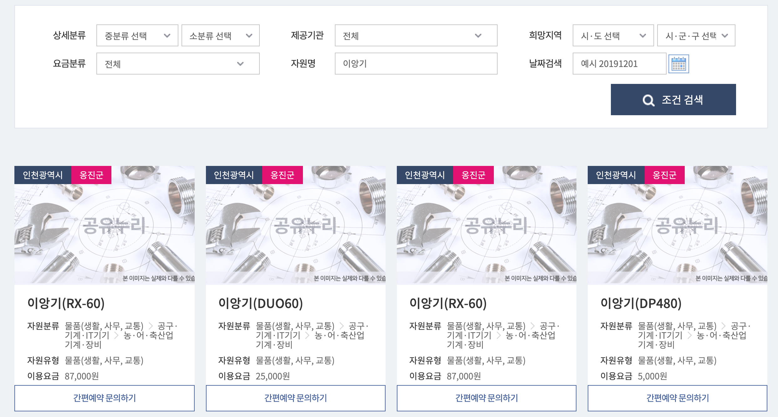 3. 공유누리 사이트에서 대여 방법 (예)