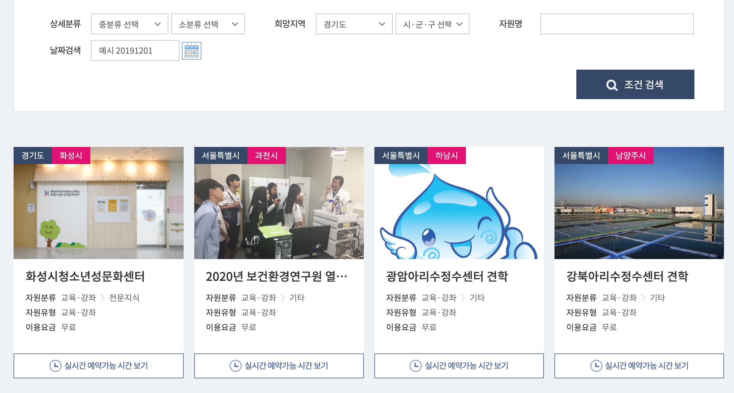 어떤 행사를 위해 회의장이 필요하거나 체육 활동이 필요하여 체육관이나 운동장을 빌려야 할 때 직접 발품을 팔거나 전화를 하지 않고 공유누리 사이트에 접속하셔서 검색 후에 예약을 하면 됩니다.