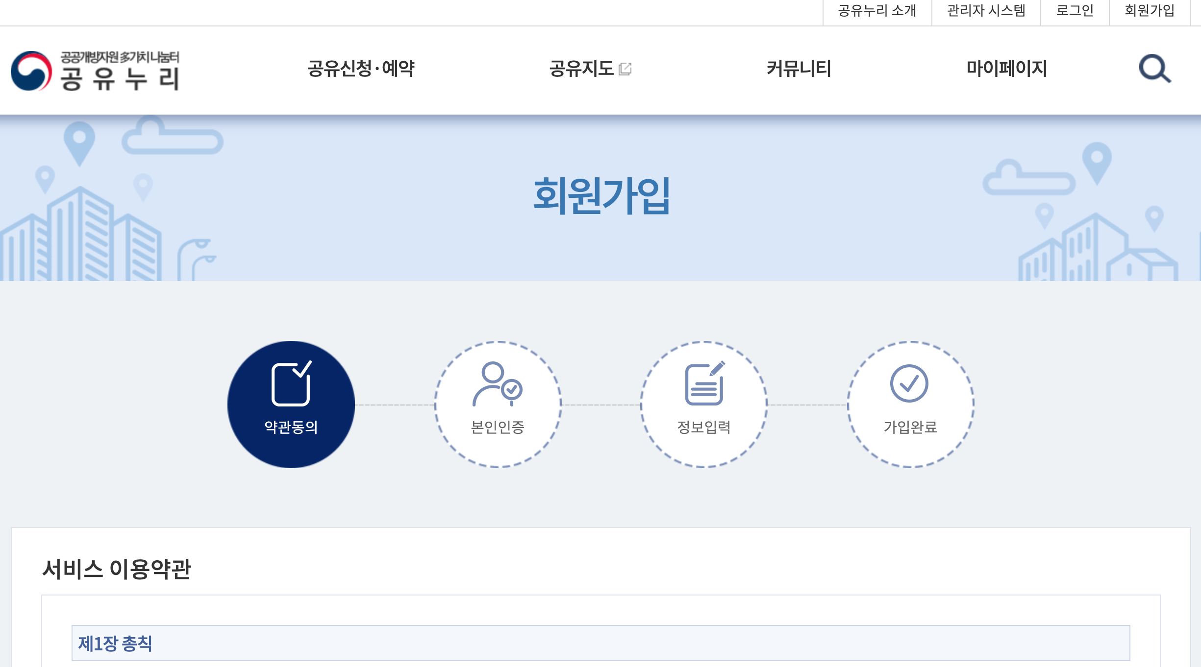 가장 먼저 공유누리 사이트에 회원 가입을 하셔야 합니다.(공유누리사이트 바로가기)