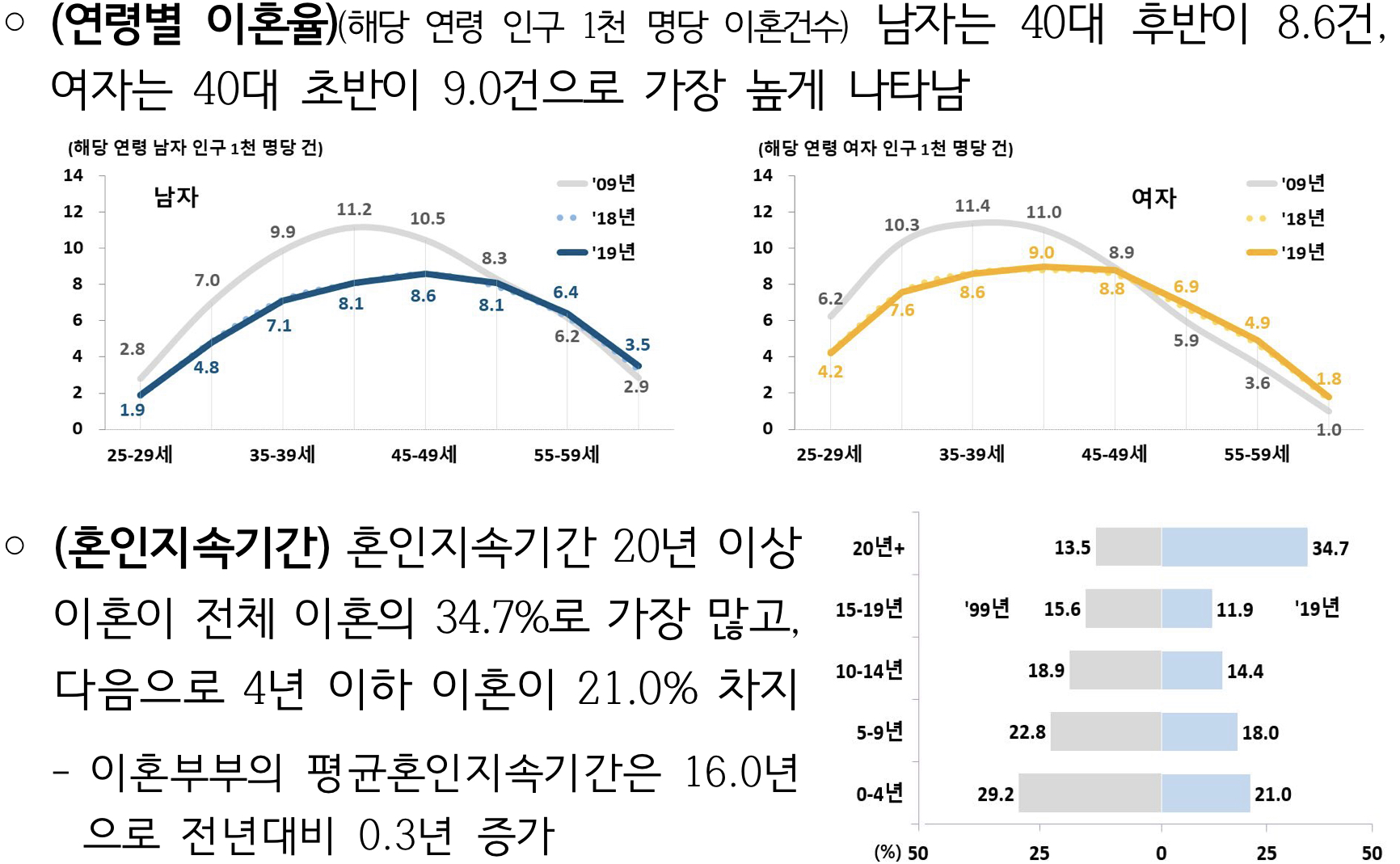 4. 2019년 연령별 이혼율 및 혼인지속기간별 이혼율