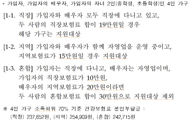-위 표에서 혼합의 의미는 한 가구 안에 직장건강보험 가입자와 지역건강보험 가입자가 동시에 있을 때 합친 금액을 의미합니다.