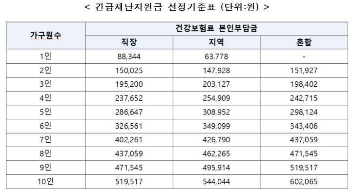 2. 긴급재난지원금 선정 기준(건강보험료로 확인)