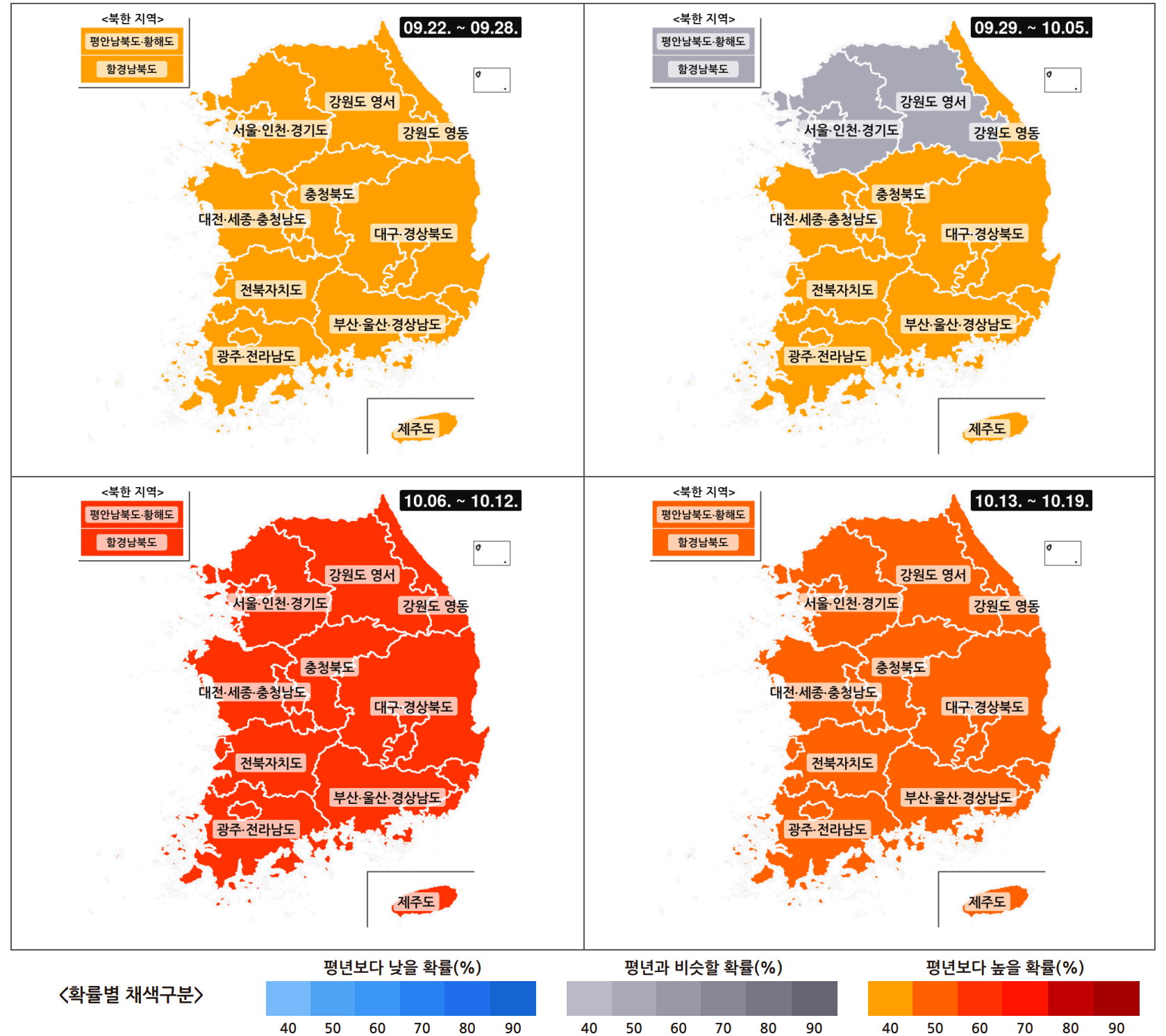 - 2025년 9월 22일 ~ 10월 19일 한 달 주별 전국 날씨 전망