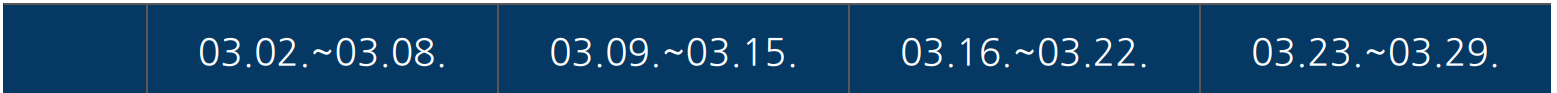 - 3월 2일 ~ 3월 29일 한 달 주별 날씨 전망
