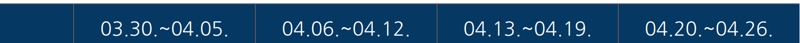 11. 3월 30일 ~ 4월 26일 한 달 주별 날씨 전망