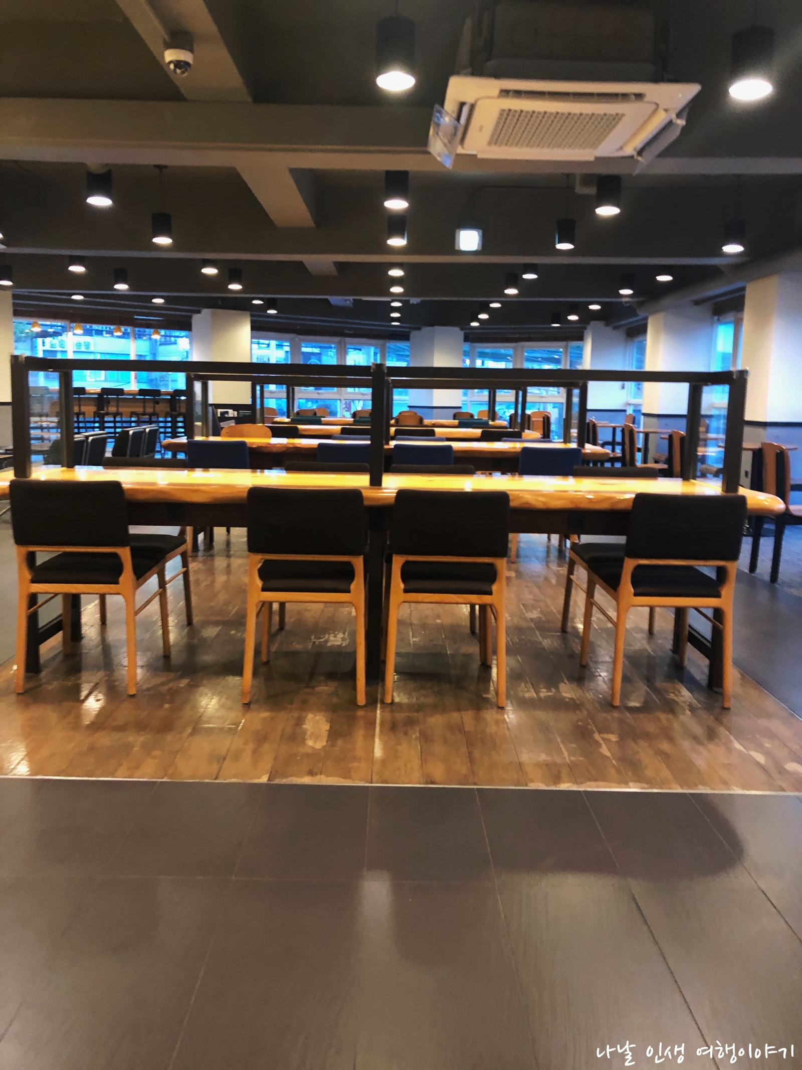 그리고 공간이 매우 넓어서 많은 자리가 있습니다.