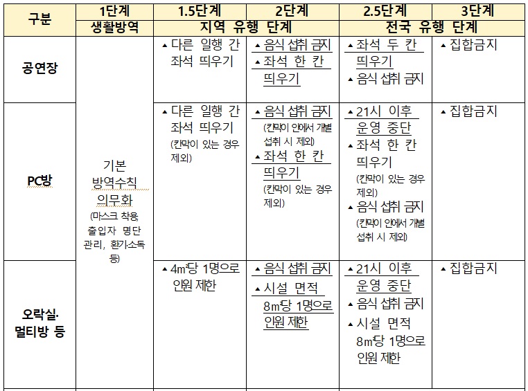 -공연장은 3단계부터 집합금지