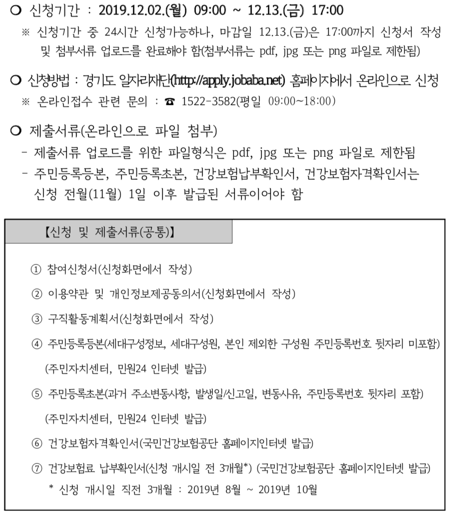 신청방법은 경기도 일자리 재단에 사이트에 회원가입을 한 후에 온라인으로 직접 신청하시면 됩니다.