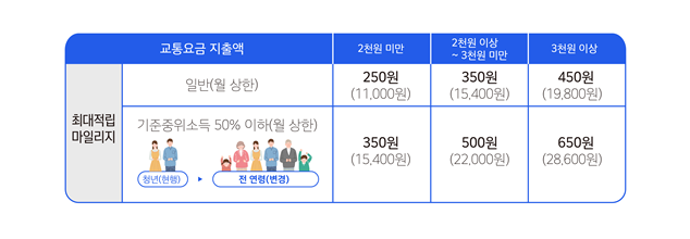 • 기준중위소득 50% 이하 청년만 추가 마일리지 지급 |