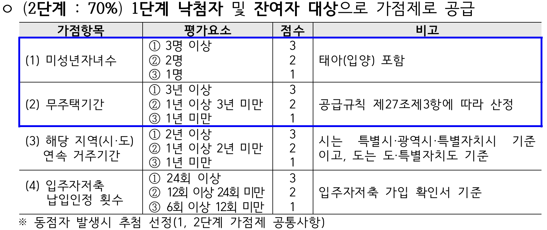 2) 2단계 전체 아파트의 70% 입주자 선정