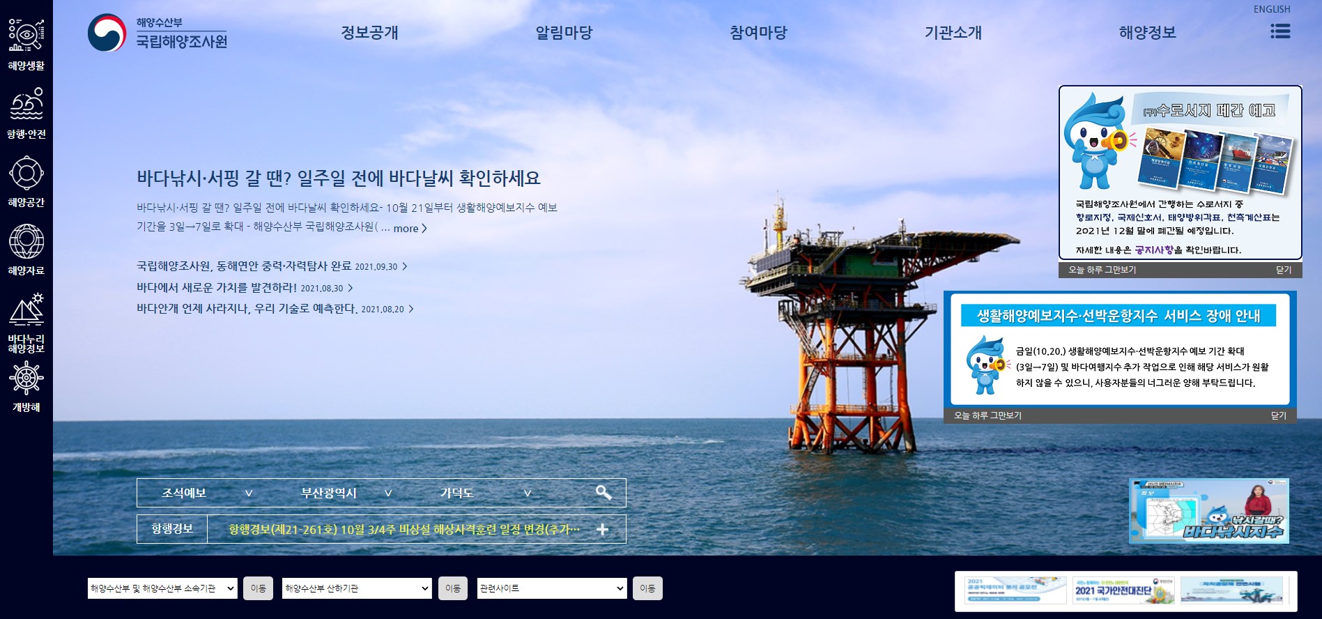그것은 바로 해양수산부에서 운영하는 국립해양조사원 홈페이지를 이용하는 방법입니다.