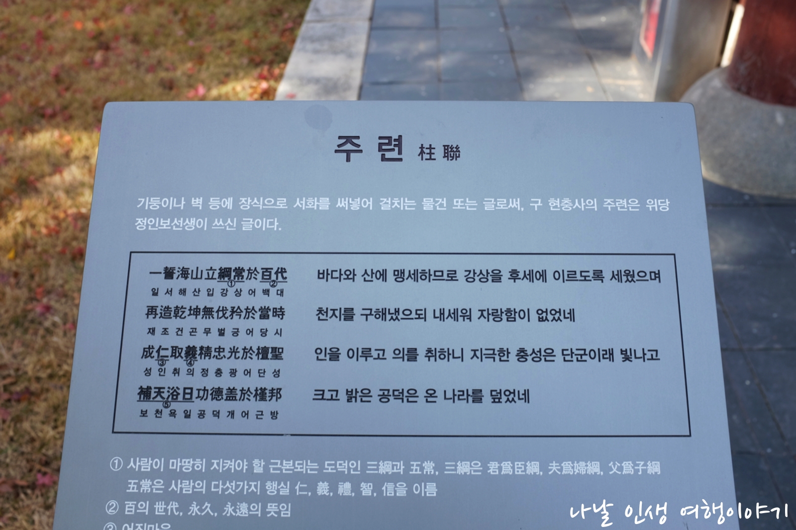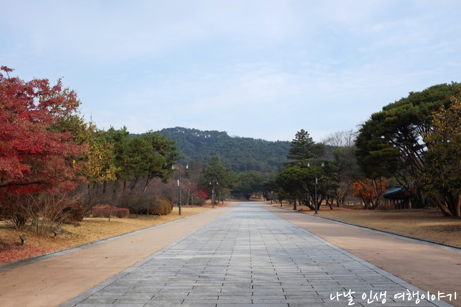 구 현충사로 가는 길도 마찬가지로 단풍들과 다양한 나무들로 참 예뻤습니다.