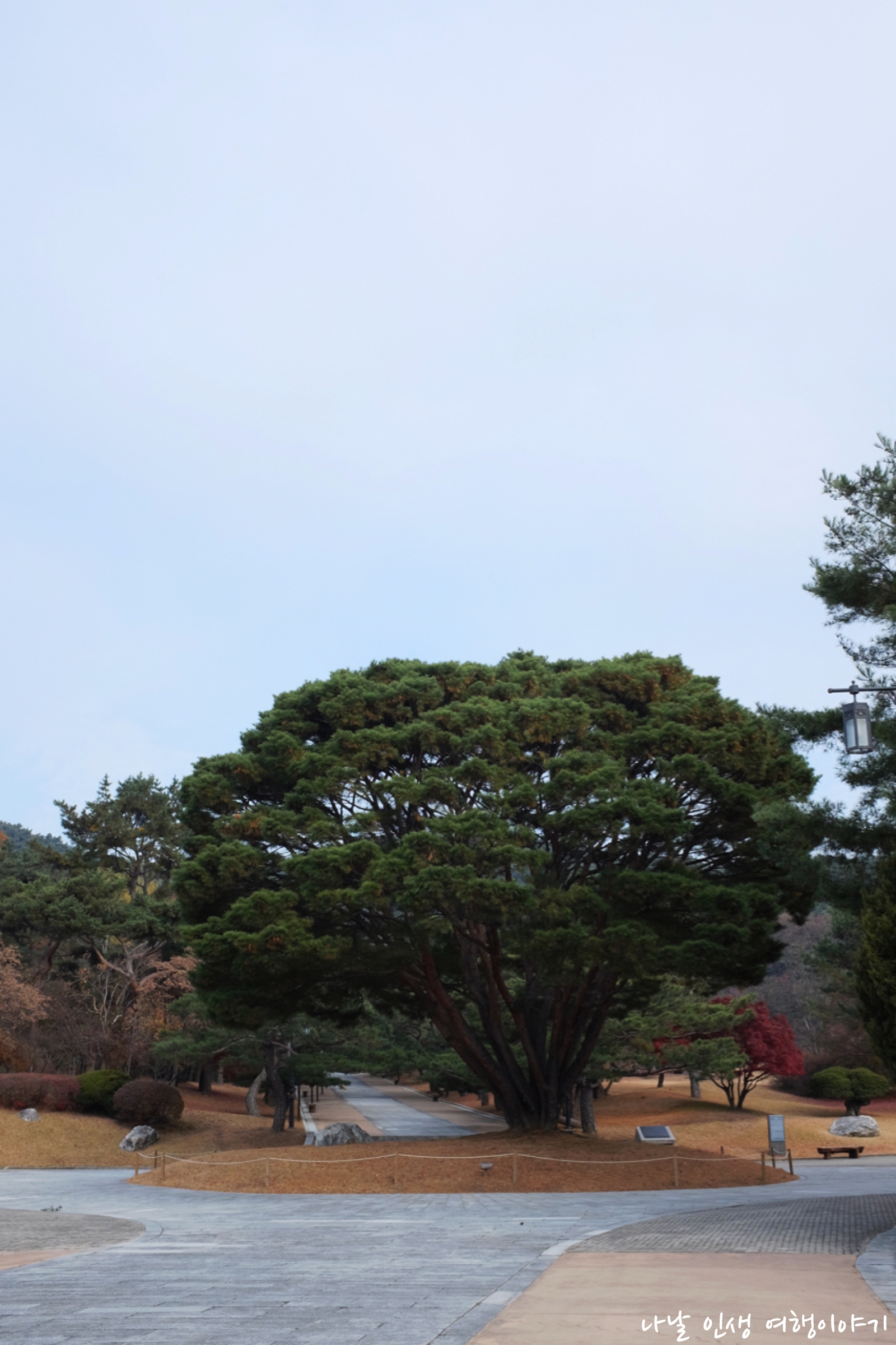 입구에서 현충사 사당 중간쯤 왔을 때 커다란 소나무가 눈에 띄었습니다.