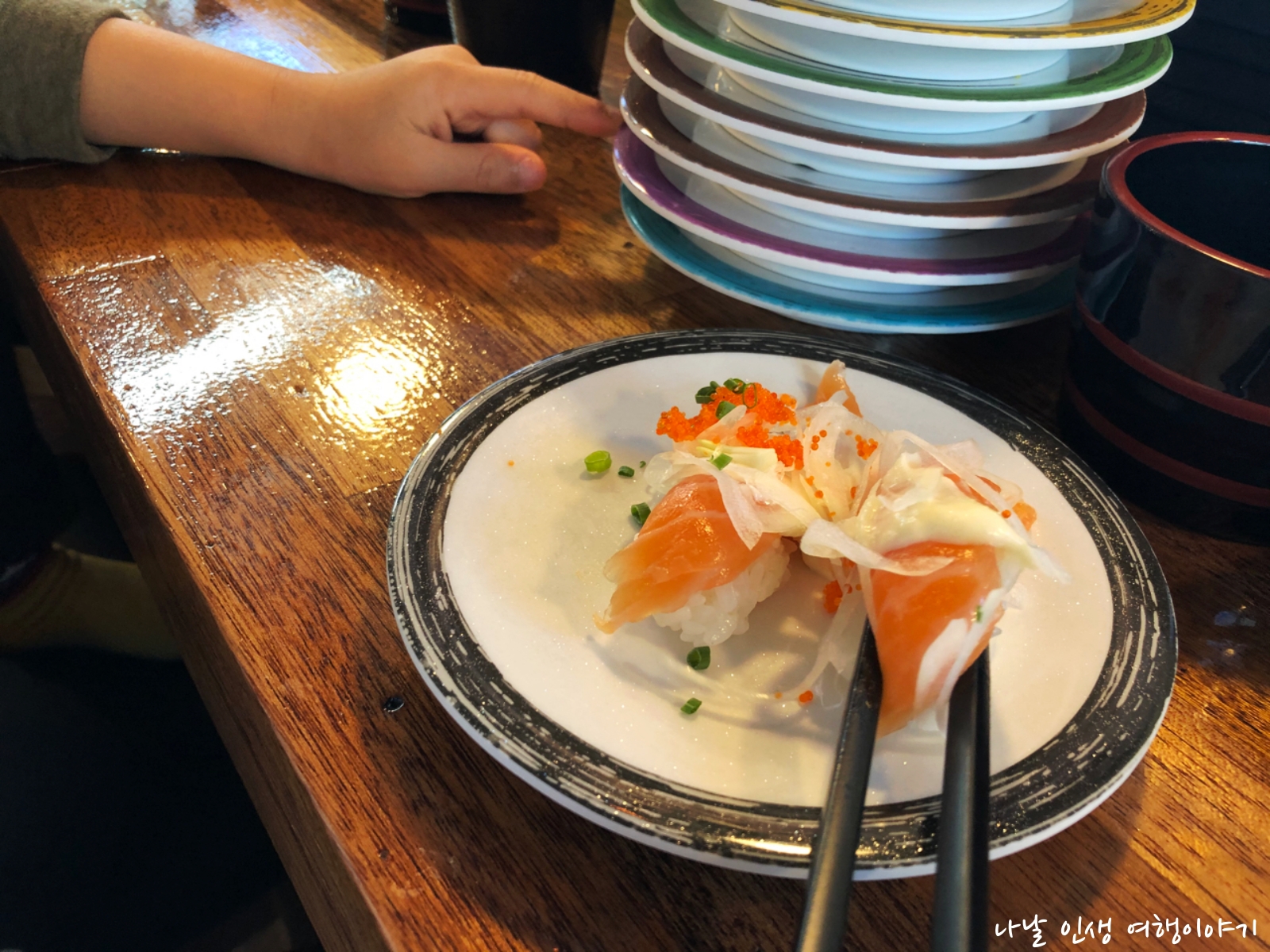 -회전 초밥이라서 아이가 직접 접시를 잡을 수 있어서 흥미로워했습니다.