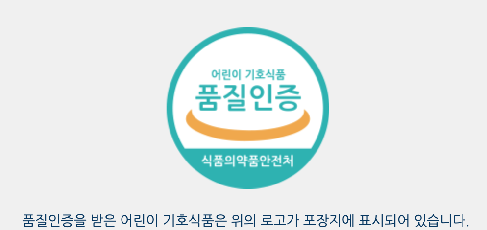 품질인증마크를 받은 제품은 고열량 저영양 식품이 아니고 어린이에게 안전한 식품입니다.