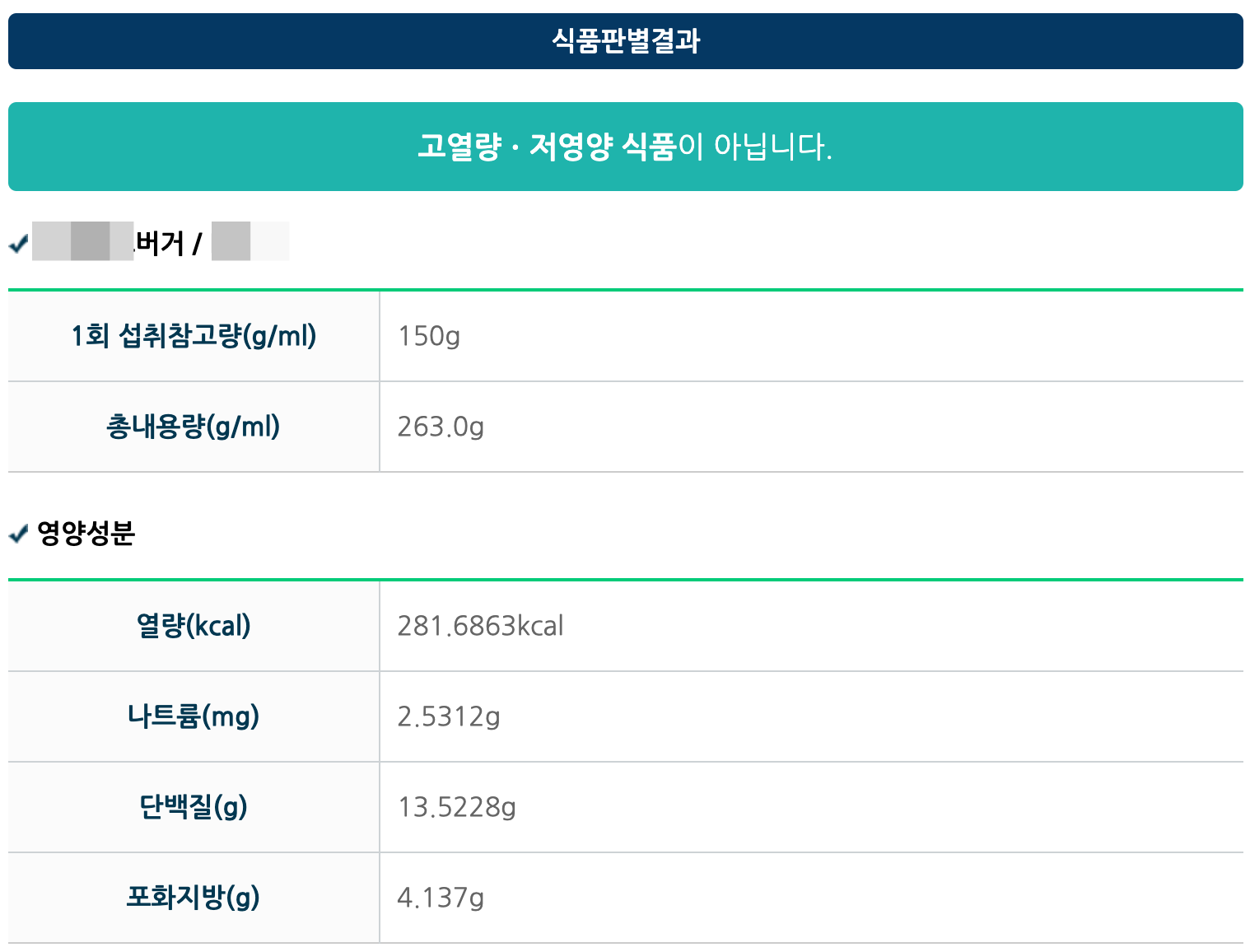 같은 회사의 버거 식품인데도 하나는 고열량 저영양 식품이 아니고, 하나는 고열량 저영양 식품이 맞습니다.